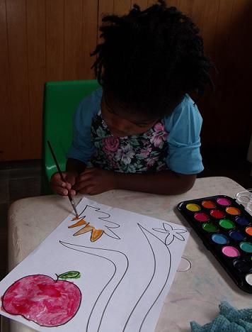 I know I need to give the girls more opportunities to paint so I got some paints out today and tried (yes they are not that great) to draw some leaves and things for Ruth to paint. I got the ideas from her one Autumn game.
