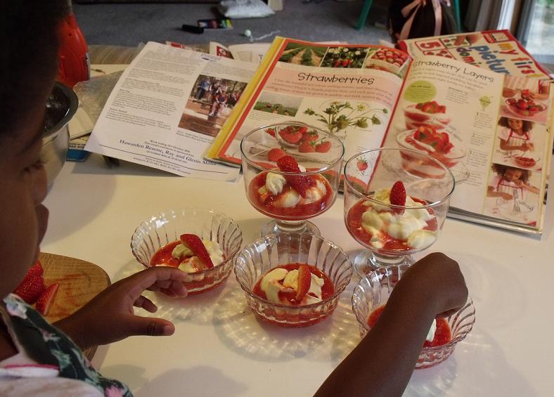 Beat the cream. Making sure it does not turn to butter. We spoke about the times Ruth has seen cream turned into butter. It was good for her to watch it whipping up and see how it changed.